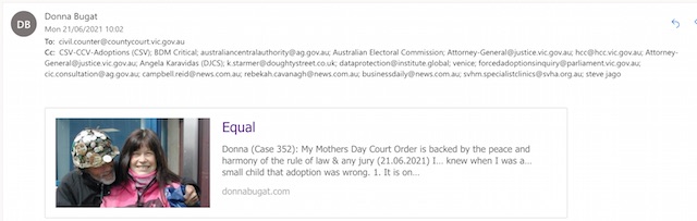 Donna (Case 352): My Mothers Day Court Order is backed by the peace and harmony of the rule of law & any jury (21.06.2021)