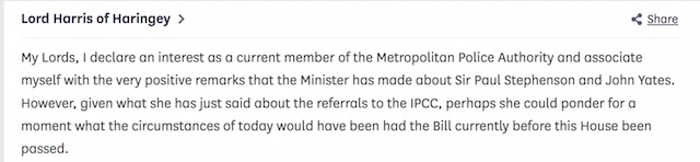 Lord Blair… chose to resign for public consumption on 2nd October 2008, because he knew he would be elevated to the House of Lords.