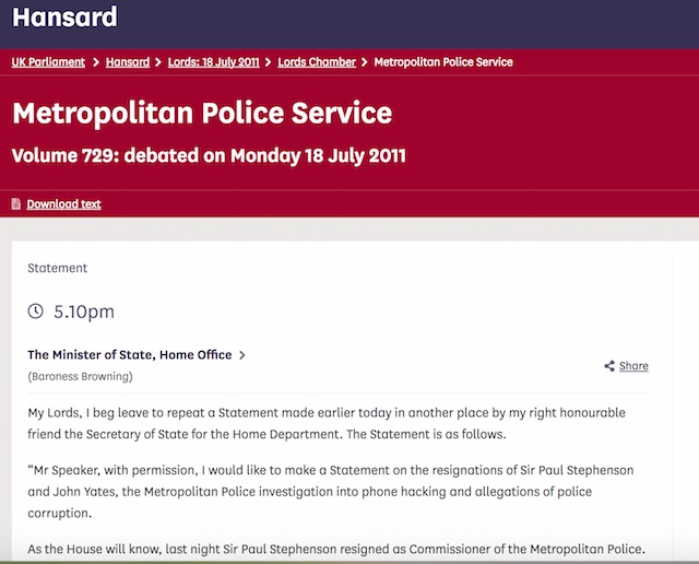 (Lord Blair had previously tried to introduce perjured witness statements from a Superintendent Terry and Chief Inspector Robinson on 14th September 2006 that could only have been invented sometime… after 4th September 2006)