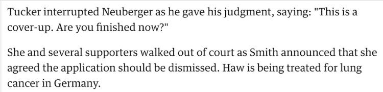 It is true I did happen to briefly mention in passing to a Lord Neuberger in the UK (who now sits in a court in Hong Kong with a fmr Chief Justice of Australia called Gleeson) ‘words to the effect’ in ‘satellite litigation’ from politicians in April 2011 (about illegally denying me legal representation) it is and was a “cover up” in the UK (not long before a Sir Ken Jones, a fmr Head of ACPO in the UK, resigned as a DAC in Victoria, Australia when a Premier Andrews was a Health Minister) which of course remains absolutely true.
