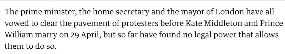 It is obviously illegal for politicians et al to harm a law abiding civilian to try and dodge it is the political science of adoption legislation (like ss 132-138 SOCPA 2005 in the UK) that is legally unjustifiable.