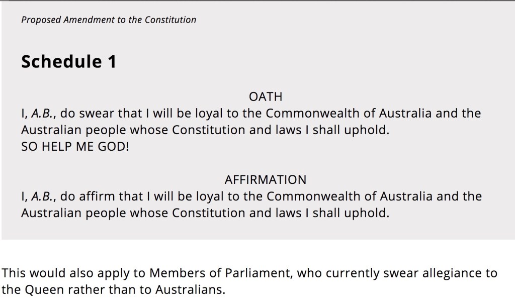 (It is similarly not illegal for me to not support or swear allegiance to the monarchy -or- a faux republic movement in Australia that consists of just the same old revolving doors of politics and the news media scrum who only want a head of state put forward by politicians and for the wealthiest people to continue to legislate whatever they want.