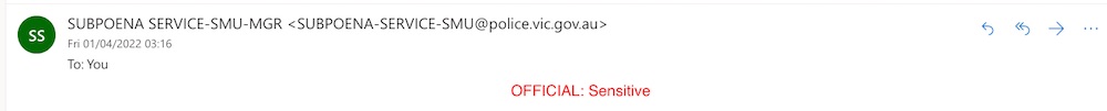 Re Victoria Police ‘Official Sensitive’ email 01.04.2022