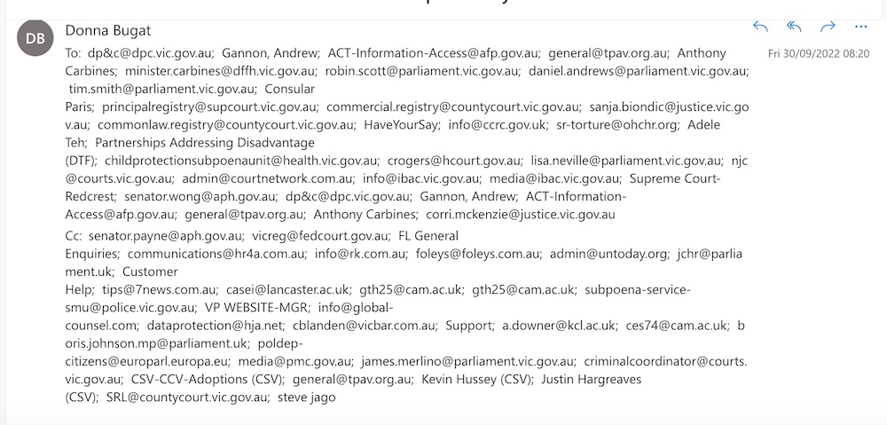 Donna Bugat -v- State of Victoria, Australia & Ors: My cancer operation & fact politicians et al have illegally stopped my asserting my absolute legal right to provide signed witness statement for court record in Case 352 etc because it peacefully nullifies injustice of draconian adoption legislation (it would have inevitably been disclosed in UK etc that Australian Murdoch matriarch & dame was in my own case, involved in my adoption) (30 September 2022)