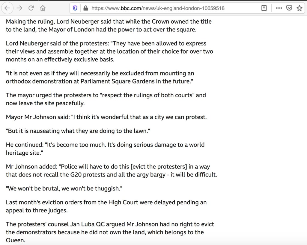 It’s self evident the phoney human rights lawyer called Jan Luba, who I had never even met or spoken to ever including before he also dishonestly publicly purported to represent Brian and myself (hiding behind the false cover of ‘land law’) which he could not possibly legally do, while also representing the not so Democracy Village (who were really what is colloquially known as ‘Westminster Village’) when Luba did know (just like the BBC did) the supposed Democracy Village that Brian and myself were nothing to do with) had literally been involved in orchestrating the unlawful arrest of me at the State Opening in 2010.