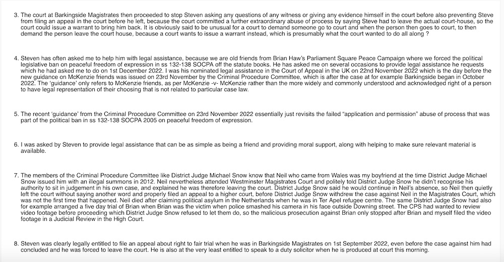 I would happen to know this ‘case’ of political persecution below about Steve actually originated over…. ten years ago in Parliament Square, Central London on 18th June 2012, in the Johnson and Snow era, but is still weaving its way through the snakes and ladders of British courts who released Steve on Monday afternoon: