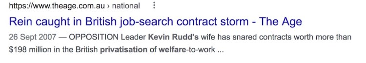 Rudd has essentially used counselling services about for example ‘forced adoption’ in Melbourne, to protect his profits from his business interests in privatised ‘welfare to work’ elsewhere.
