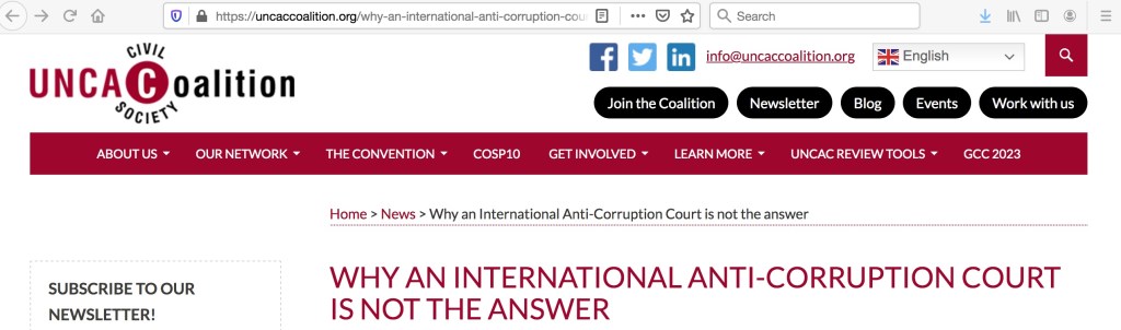 The oddly all male global media barons closely guard their chummy echo chamber with the political classes, because that is the easiest way for politicians and media barons to personally profit. So, I don’t know how successful an International ‘anti-corruption court’ would be that would depend on how it was set up, because most of the corruption is between the revolving doors of inextricably linked politicians and oddly all male media barons who rely on each other to profit along with their mates.