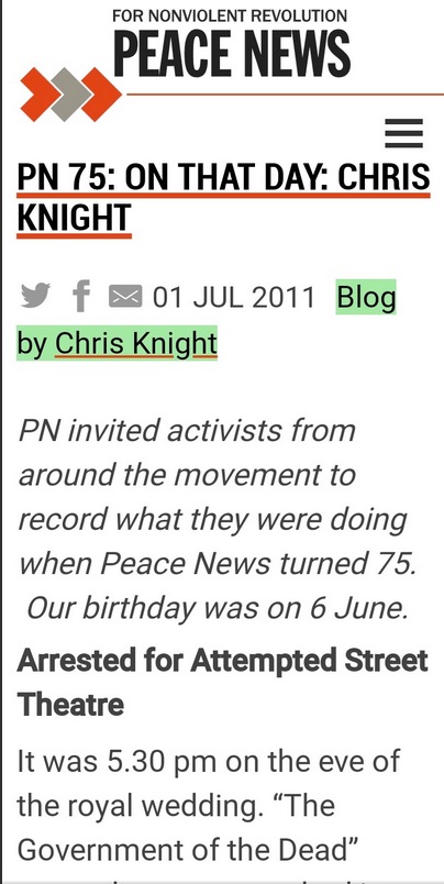 The ‘Peace News’ folk who behaved like zombie sometimes are what is known as… ‘government approved’… ‘activists’ or rather more often known as ‘agent provocateurs’ which we obviously saw because we were consistent in what we did.