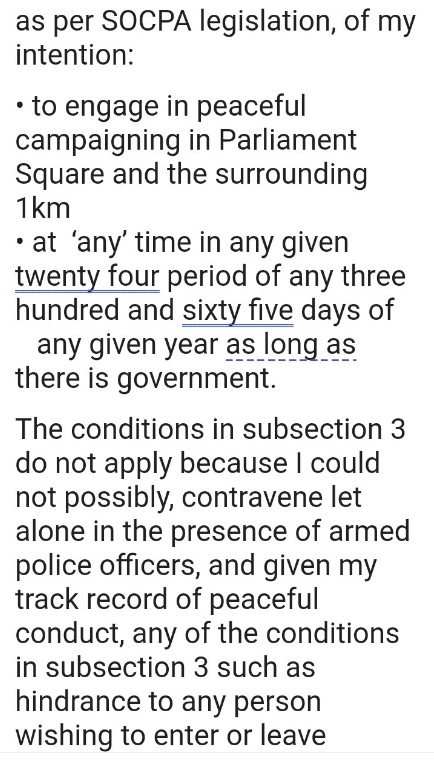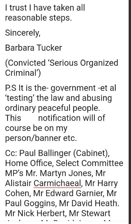 I had taken all ‘reasonable steps’ to technically ‘comply’ with the intentionally libelous ‘Serious Organized Crime & Police Act’ legislation in the UK, despite not agreeing with it, and while realizing there were no legal grounds for politicians et al to impose ‘conditions’.