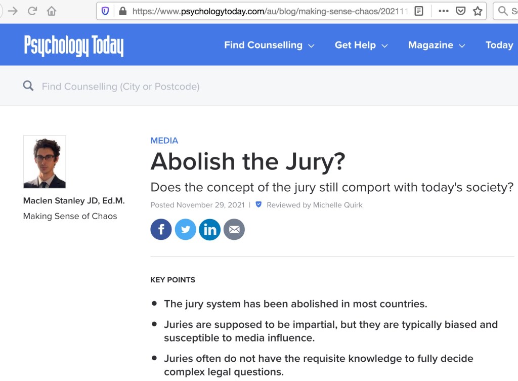 There is a place for juries which obviously do include professional people from all walks of life who can provide an important check and balance to often oppressive legislative excesses and so on of politicians who are often nothing more than mouthpieces for corporate sponsors: