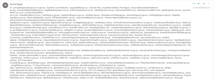 Donna Bugat -v- Murdoch family & Ors (ie Rudd, Andrews & State & Federal Labour & Liberal political parties, Vic Police et al) @ Supreme Court, Victoria, Australia: FAO Registrar: I have already officially ditched ‘adoption court order’… before I was officially diagnosed with recurrent cancer, because I know my civil jury lawsuits in UK showed County Court et al in Victoria, Australia knew they lacked… jurisdiction to ignore my own… decision & refuse to release me from ‘adoption court order’ until or unless I first ‘agree’ (under duress) to ‘waive’ civil jury lawsuits in UK & Australia over harms & losses (retrospective 1984 adoption legislation in Victoria, Australia cannot legally be used in that way) ie: Murdoch family (who trafficked me to ‘Fremantle’ intelligence services) backed Rudd ’07’ to be Australia PM because he could launder $1.4 billion etc from UK through Ingeus, to for example illegally cover up I also really ‘won’ HQ11X00563 in the UK in… January 2011… before window dressing of Johnson et al’s ‘satellite litigation’ from 2010 had actually been albeit illegally ‘remitted’ back to High Court, where I also made my own… decision in HQ11X00563 in October 2011 when I ordered Banksy’s art taken on 23rd May 2006 returned to the artist which Johnson & New Scotland Yard did do while still refusing to hand over CCTV of torture and attempted murder of me, to me… before my civil jury lawsuit HQ12X03564 over 16th January 2012 etc because Johnson, May & Barrow et al then lied about having an injunction (I should have had to stop lies being published while I was illegally detained) when HQ11X00563 had not been & could not legally be ‘stayed’ (05.10.2023)
