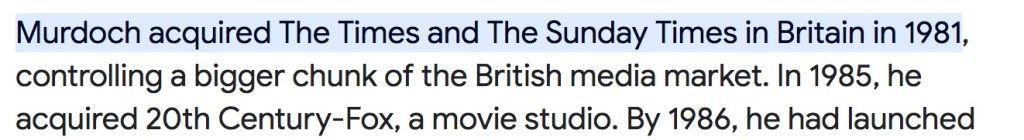 The Murdoch family and Vitol Duncan (Iraq sanctions busting etc) were linked by Marc Rich from Glencore (which was how Murdoch got Fox)