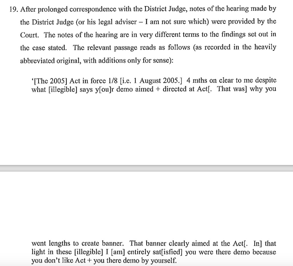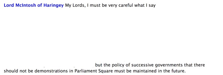 I aI asked a police lawyer (Winfield) what they were playing at only disclosing the above ‘smoking email’/document in a bundle in CO/11393/2007 and not the earlier cases in the Magistrates Courts !!!! and she did literally say it was their ‘get out of jail’ free card they must have demanded at some time from the British Parliament, to try and avoid being personally sued. They didn’t mention the link between the House of Lords statement on 23rd May 2000 about banning peaceful protest in Parliament Square, and 23rd May 2006.