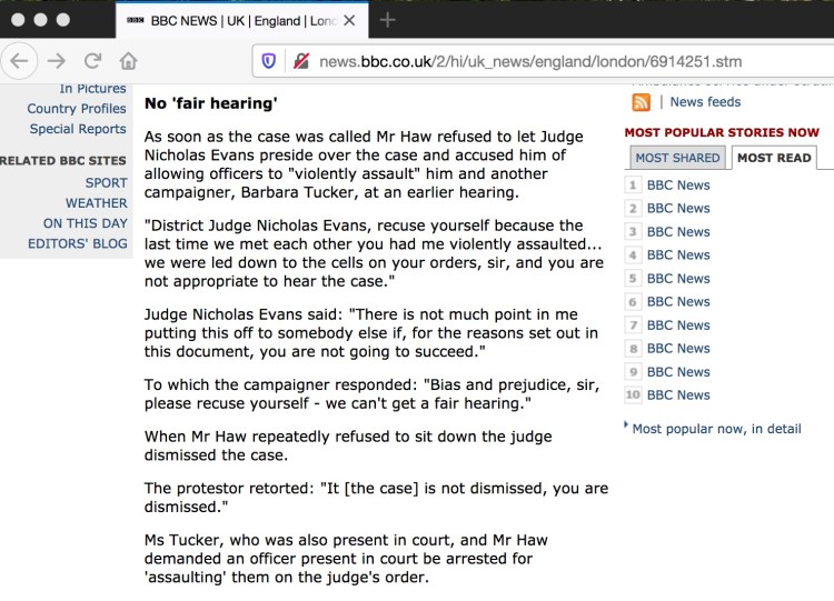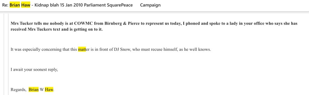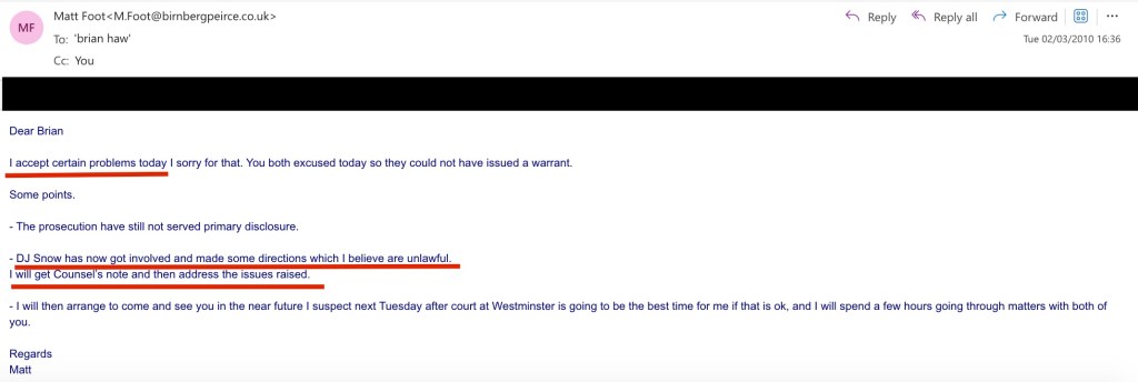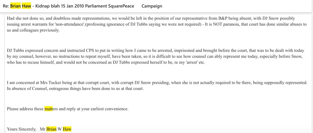 A lawyer, Mr Foot from Birnberg Pierce wasn’t being honest in his email above (where he did nothing about the unlawful directions from a District Judge Snow he refers to himself, because the case Brian is referring to (that involved the same named undercover named on 13th January 2010) was suddenly adjourned in the Magistrates on 29th April 2010 to be ‘re-imagined’ as ‘Democracy Village’ on 1st May 2010 onwards with the same ‘organizers’ who (despite the media spin) Johnson never took legal action against, before I was illegally denied legal representation (Birnberg Pierce) on 21st June 2010. That could never have happend with audio/audio visual recordings in the Magistrates Courts, and Birnberg Pierce knew that and just wanted Brian to fire them too. We had never even met the brief Mr Harris from Hong Kong/Doughty. Doughty obviously could not say they didn’t know about the case stated by one of their own barristers on… 24th February 2006. Of course Starmer from Doughty was profiting by grandstanding as the DPP by then. The term ‘human rights’ lawyer is just a marketing slogan used by a few unscrupulous law firms in London, who are ‘New’ Labour party apologists for the ‘lawyer’ Blair who was the ummm… Murdoch family lawyer. I don’t think anyone would pretend Blair or the Murdoch family have ever had any time for human rights for any civilian population, anywhere.
