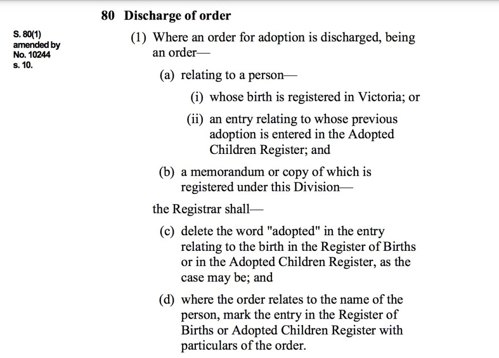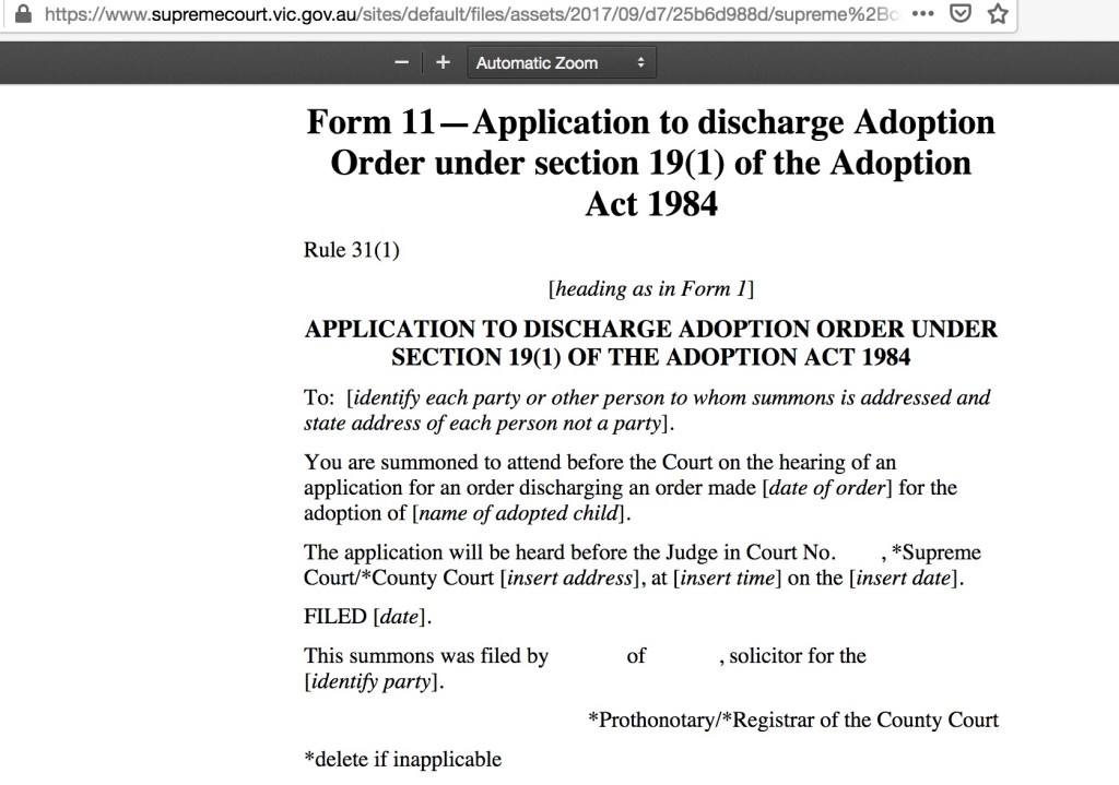 I have never been given incl free of charge a certified copy/extract of my adoption court order as per the Adoption Act 1984 (the courts only disclose photocopies through the Adoption Information Service only presumably to adoptees physically in Australia because I hadn’t even seen a photocopy (from the AIS) until July 2019 which it is admitted is clearly valid in any courts that must include outside Australia (which politicians have not been complying with)