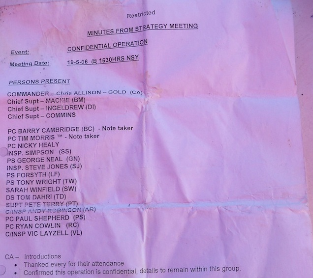 They spent half an hour standing round without any sniffer dogs going near Brian and my tents. I don’t personally remember Acting Inspector Cole telling Brian and he (Cole) was being a “sniffer dog” too. I do remember Cole was compromised when (at the instigation of Livingstone who phoned me) he had covered up the identity of the undercover who violently punched me in the head on 17th August 2007.
