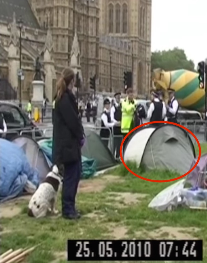 I had realised at some point, on 25th May 2010 the members of the rogue ‘Democracy Village’ must be wired because they behaved like zombies and did not move around or speak naturally. It was like they were being briefed what to say and where to stand, which during the course of a half an hour of no sniffer dog going anywhere near Brians tent or my tent, made it increasingly clear they were getting instructions from elsewhere. The videos show the person of colour who was their ‘witness’ wasn’t even standing close enough to me to hear anything I said to other people while I had my back to Cole and her, and she was standing with Mr Bailey.