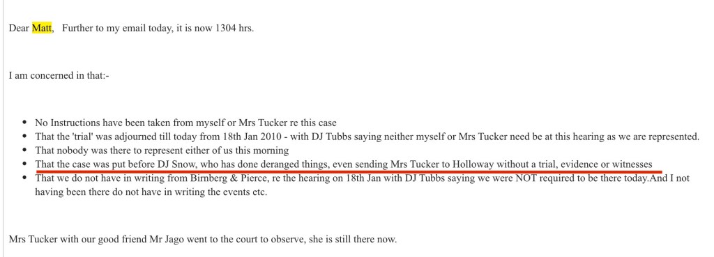 ( I blew the whistle about undercovers in the Magistrates Court case on 13th January 2010, which was covered up/ illegally adjourned until August 2011 after Brian had died and once again I had no legal representation and was illegally imprisoned through the Magistrates Court without any trial by the same Judge from 22nd February 2006. I was illegally imprisoned in April 2008 without legal representation or trial in the Habeas Corpus Case, because the Judge had been compromised/there was a massive lawsuit also involving a court order he had illegally issued in Westminster Magistrates on 22nd May 2007 in defiance/ignorance of a Crown Court Order from 8th March 2007)