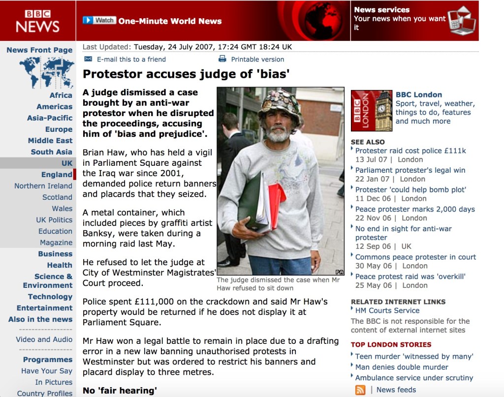 The BBC report deliberately lacks context, because they knew Brian is referring to what became the not so landmark High Court ‘Contempt of Court case about me, because there are no recordings in British Magistrates Courts and Brian was also correct in saying the judge not the case is dismissed, in what became CO/11393/2007 in the High Court because so many judges et al ‘sidestepped’ legal realities like due process etc.