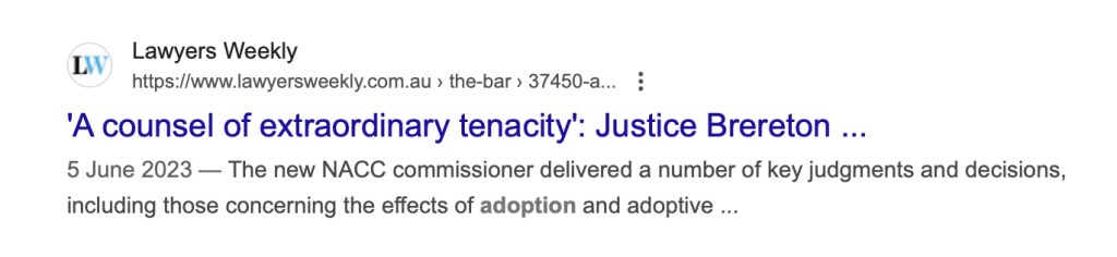 (I presume a fmr NSW Supreme Court Judge, a Mr Brererton is in effect defending the judiciary in his now civilian role as Head of NACC, but I do not reasonably believe he has or had the necessary legal standing as either a Supreme Court Judge or Head of NACC to interfere in democratic politics, including through an adoption court order.)