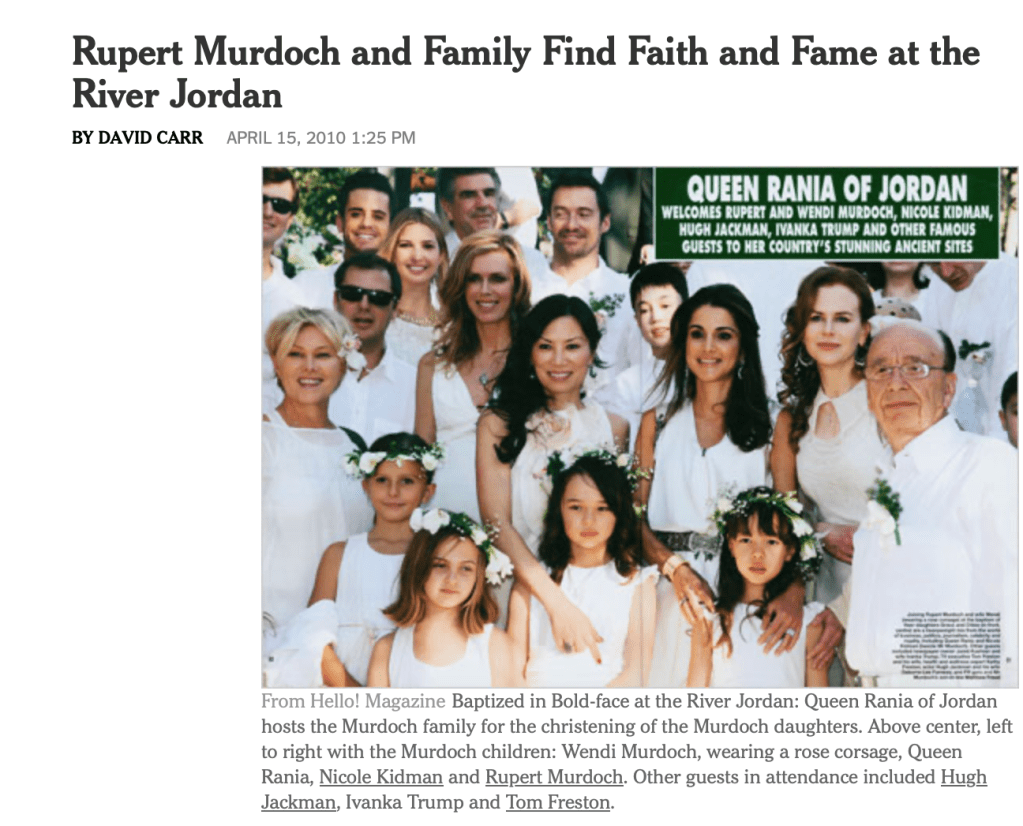 The Murdoch family… adoption ensemble with the Australian cult of adoption celebrity in Hollywood, including the quite British, Jordanian monarch/y who have a Palestinian adoptee too: