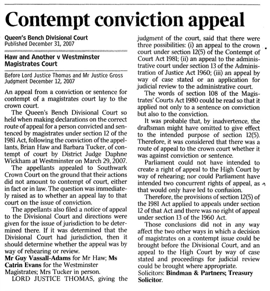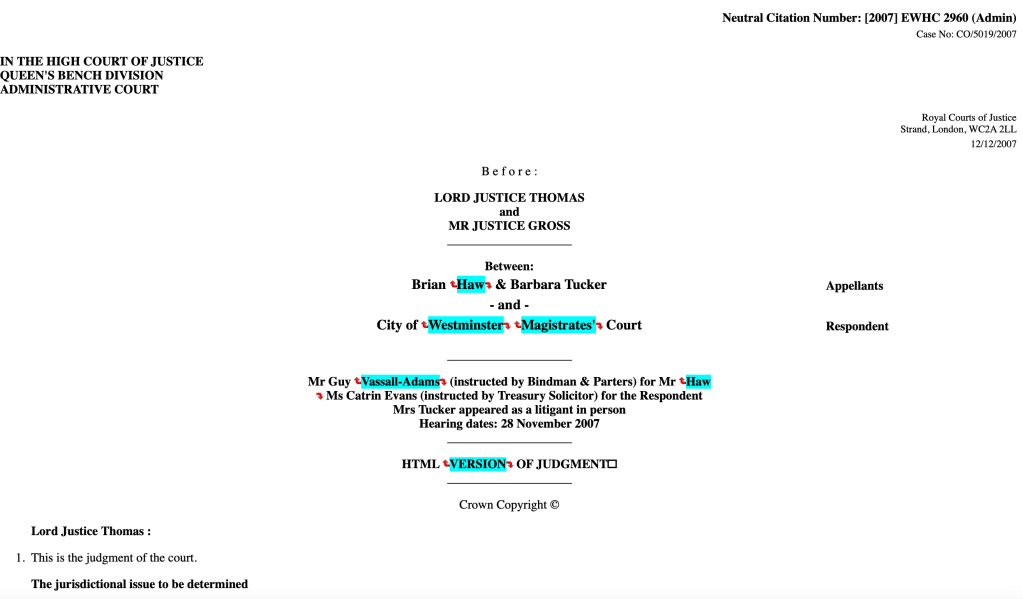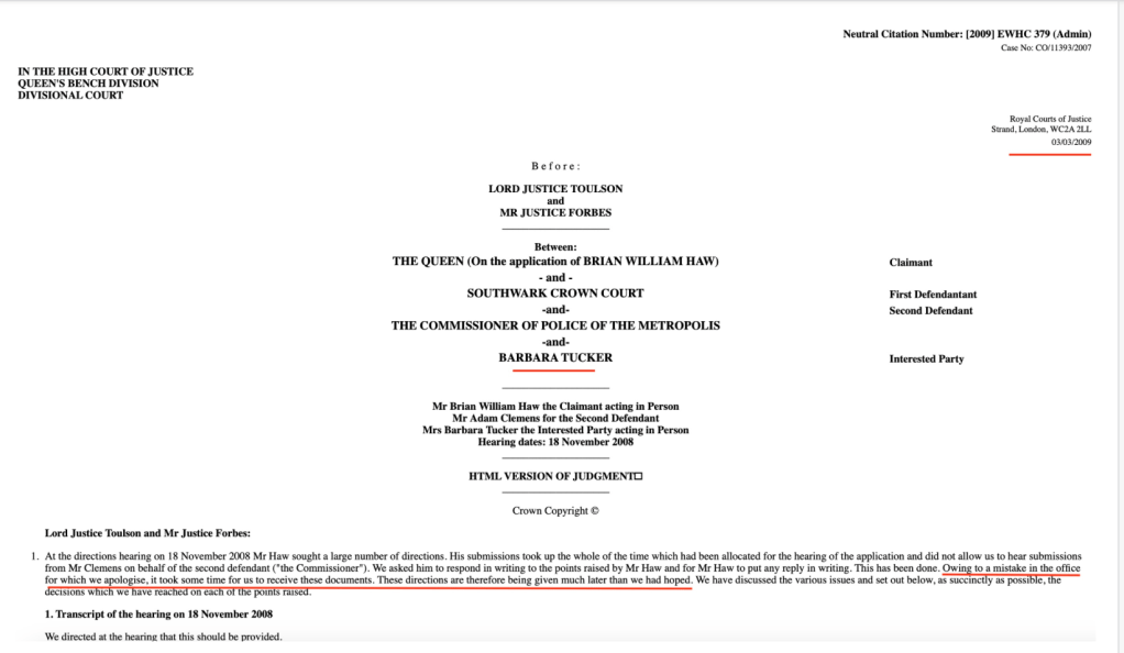 The judges did the usual switch-a-rooney, of hearing linked cases out of order, by the same group of three High Court judge (with one judge -Collins- illegally denying me legal representation… again, while the other two High Court judges Lord Justice Thomas and Mr Justice Gross, did the hearings, with CO/4002/2006 going ahead ahead with a hearing in my absence on 30th November 2007 because the court ‘forgot’ to notify me of a hearing in the knowledge they could not really argue the case stated didn’t have to be amended, after the landmark alleged Contempt of Court case CO/5019/2007 involving the same District Judge Nicholas Evans had been heard earlier on 25th October and 28th November 2007 which was further complicated because: