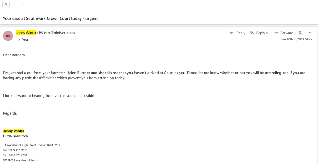 I had already told the court (below) myself, I was in Germany (in May) and had returned before only for the above to happen on 11th April 2013 after I had been forced to got to the High Court on a… false pretext about my civil jury lawsuits which turned out to be the trap above (& when my boyfriend at the time who had previously been very seriously injured by the MET Police was unlawfully arrested when we were leaving the High Court on 11th April 2013, the lawyer below had refused !! to go to the police station after the City of London police, belatedly produced an arrest warrant from MET Westminster Police that was unsigned and related to the supposedly non-arrestable PRSR Act 2011 I already had a lawsuit over HQ12X003564 from 16th January 2012 that -also- involved the City of London police too, on a day Neil was with me, so I did know what was going, and the lawyers knew it was all political for goodness sakes) so when I had previously come back to go to Southwark Crown and forced to go to the… High Court about my jury lawsuits… Southwark Crown Court had vacated without notice their criminal hearing, so I wasn’t going back for Southwark Crown Court again, because if I had come back and ‘won’ the malicious prosecution against me at Southwark Crown Court (I knew would never go ahead because it had a jury) that I also already knew I could be sure when I walked out of Southwark Crown Court (because I had made another claim against the City of London police about witness intimidation !! that became (CO/00160/13) it would have been used as an opportunity because I was in the country, for me to be kidnapped on some false pretext, like Neil, where they made up a fraudulent unsigned arrest warrant or whatever and the lawyer would have made excuses why they wouldn’t go to the police station etc etc because that is what they did to Neil. And I had to file a video of what really happened in a case with Brian in 2010 before he died, before those lawyers were professionally embarrassed enough into doing something for Brian other than harassing him while he was in hospital having just got a cancer diagnosis, before he died in Germany. Brian died in hospital in Bremen in Germany (not Berlin as the press claimed) and Neil died in a hospital in Essen in the Netherlands (after he was inexplicably as an EU citizen sent to Ter Apel refugee centre). One day Neil was walking around fine. And then he was violently attacked by the MET Police and he was never the same)