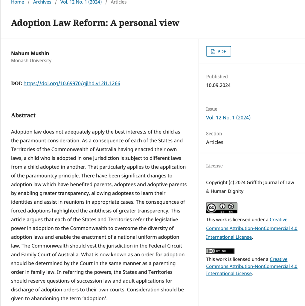This article from Professor Mushin from 2024 below (he’d do well in the Murdoch Crime family’s fanciful Crime and Justice Commission in the UK) is so rude, patronising and paternalistic along with being just plain… dishonest. He would never dare repeat the term ‘forced adoption’ in any court, because he knows he is hiding when an adoption court order constitutes false imprisonment. Every adoptee speaks for themselves and he speaks on behalf of, or instead of, precisely… no-one. The whole legal point is judges have no jurisdiction to have an opinion about an adult adoptee ditching an adoption court order. The professor interestingly doesn’t even address how it is clearly…. disproportionate to force an adoptee to return to the … originating court. I mean how would he explain that disproportionality to a jury ????? These are real people’s lives he is misleading people about. I guess there really is a problem with pomposity in countries with judiciaries who entertain and are obsequious to the… inequality of an institution like… monarchy, yet talk down to ordinary members of the public: