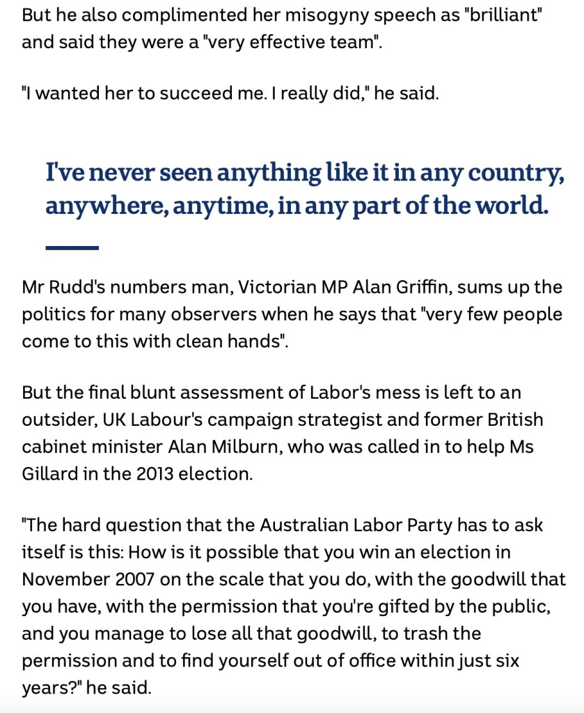 Rudd just had to portray like Livingstone in the UK, that he was opposed to the Iraq War, to get the votes he needed before he became one of the biggest cheerleaders for war in Syria and Libya to protect Vitol Oil mercenaries posing as protesters, obviously to distract from what was being done in the UK to we peace campaigners.