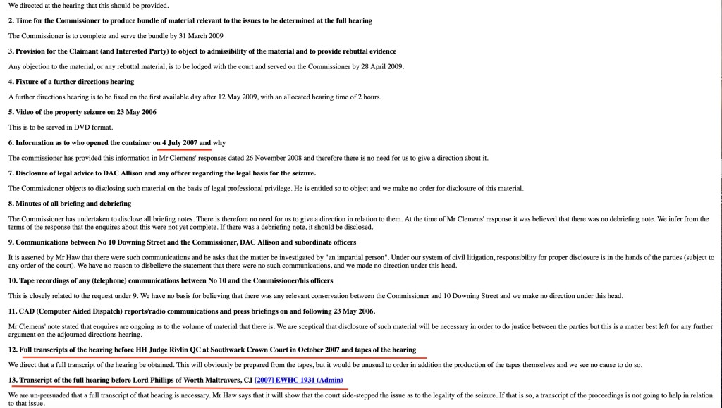 It is clear the High Court hearing in the UK on November 18th 2008 (by which time it should also be remembered I had the High Court Habeas Corpus Court Order from 16th April 2008) was pivotal including with regard to the unlawful use of under-covers, including from Victoria, Australia.