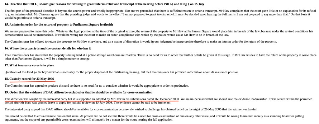 This letter dated 1st December 2006, just beggars belief when you know they were -all- illegally withholding the “both houses and black rod” document dated 19th May 2006, until they were eventually forced to disclose it, after 3rd March 2009 in CO/11393/2007: