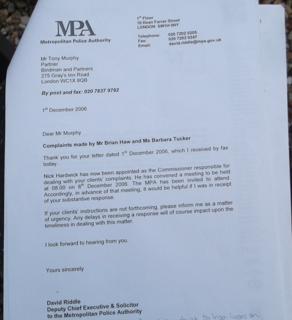 There was no valid reason for a Mr Murphy who was a partner at Bindmans (and now yet another coroner) to not have actually filed High Court jury lawsuits that already existed for Brian and I from for example Mothers Day 26th March 2006. And I already had many other High Court jury lawsuits including over 23rd May 2006 too, because I was unlawfully arrested and not charged with anything while the government was still trying to pursue Brian in what became the “no case to answer” run by a Mr MacDonald, a two-faced owner of Garden Court Chambers in London who left hostages to the… governments fortunes) Mr Murphy was wasting our time with the IPCC and MPA, who Brian and I proved knew they were acting illegally, when we had to do CO/11393/2007 ourselves !! without any legal representation, that eventually resulted in the disclosure of the “both houses and black rod” admission after 3rd March 2009 following the hearing on 18th November 2008.