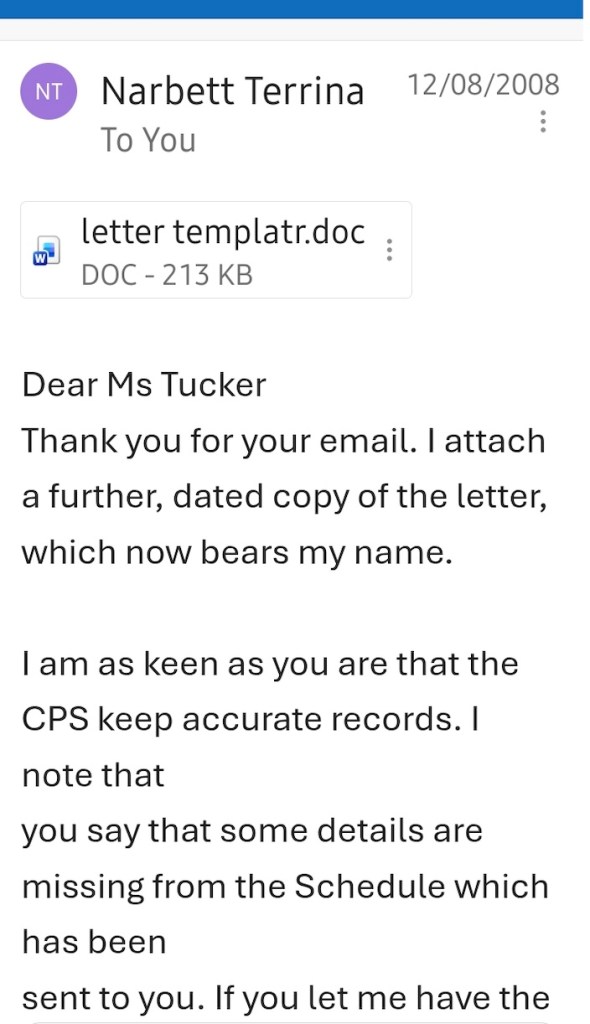 For reasons best known to Mr Simon Clements from the CPS ‘Special Crime Division’ he also posed as someone called Terrina Narbett: