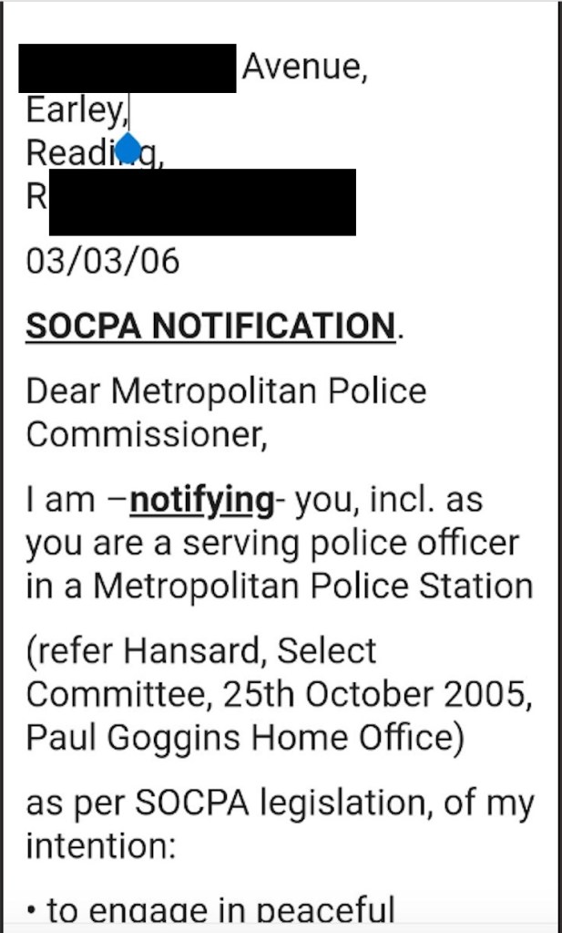 They were also trying to cover up I did act in good faith and notify as per ss 132-138 SOCPA 2005, but there was just no due process, if the government was disputing a notification, before any arrest, charge or prosecution through the criminal justice system, so I was repeatedly unlawfully arrested while the government tried to deny the -existence- of my notification (and that it was agreed on 26th March 2006, that I had a jury lawsuit).
