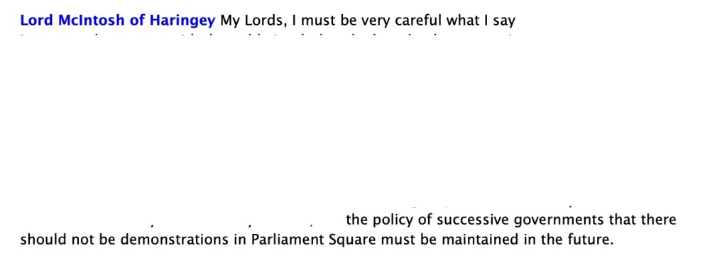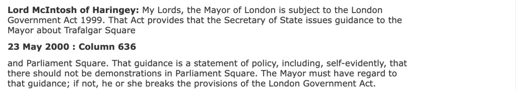 After I was on the witness stand in Johnson’s omni-shambles on 21st June 2010 where he was still trying to illegally ‘overtake’ CO/11393/2007, while trying to deflect from what he had done to me and his own involvement, in “both houses” he was disclosing what Livingstone had also been doing behind our backs that Livingstone did not deny. They were -all- trying to illegally swerve around CO/11393/2007 because it didn’t;t matter if you had one banner for 100 days or one hundred banners for one day, it was all about unlawfully banning all peaceful freedom of expression: