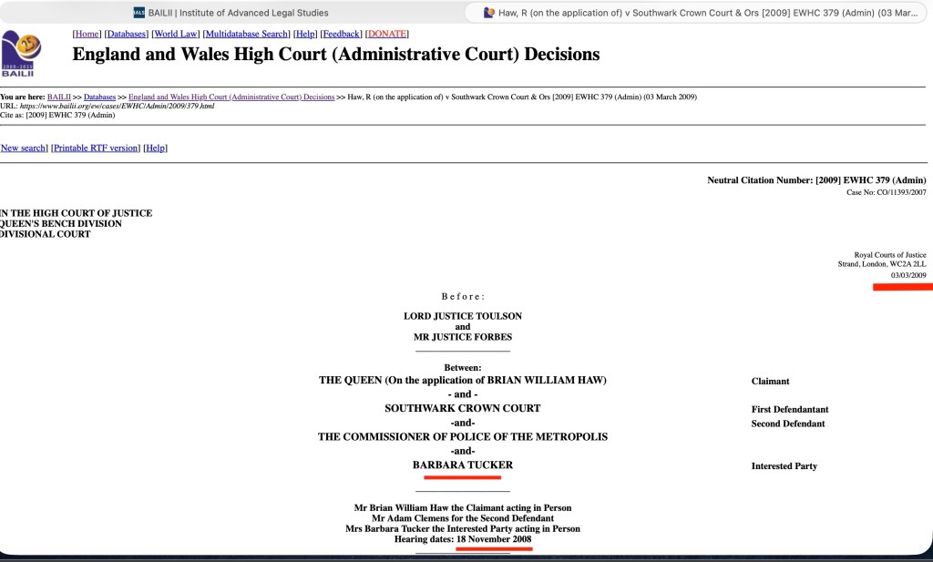 Brian and I were illegally ‘remitted’ back to the High Court in 2010-2011 as politicians continued to illegally try and overtake our different CO/11393/2007 etc including by also illegally using an undercover operation including Australians (A Sir Ken Jones had been sent to Victoria Police in Australia -after- the High Court hearing in the UK on 18th November 2008, so he could continue to co-ordinate undercovers in the UK, that included people who identified themselves as Australians, as the cover up over “both houses and black rod” etc continued.