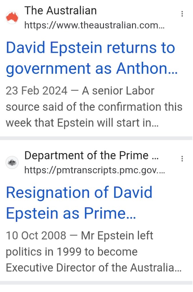 The Australian Senator McGrath and Mr David Epstein were both Chief’s of Staff to politicians in the UK and Australia around the same time. In the case of McGrath he was Chief of Staff to Johnson when he was Mayor of London, a Telegraph journalist and boss of top cops, with numerous undeclared conflicts of interest, at the same time a Mr David Epstein was Chief of Staff to Rudd when I was also illegally imprisoned without legal representation or trial on a non-imprisonable S5 Public Order allegation made by a (Vitol) Tory MP, Sir Alan Duncan, during the London Mayoral election which is why I have a High Court Habeas Corpus Court Order from April 16th 2008 (part of HQ12X02745 etc)