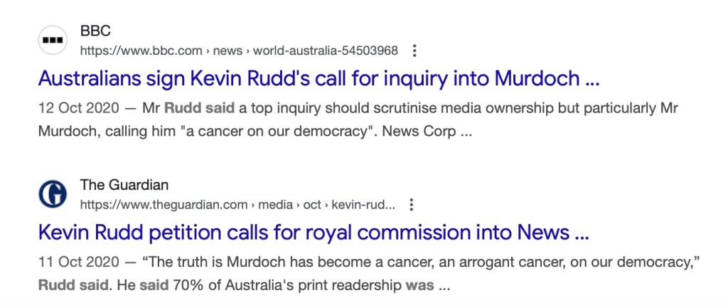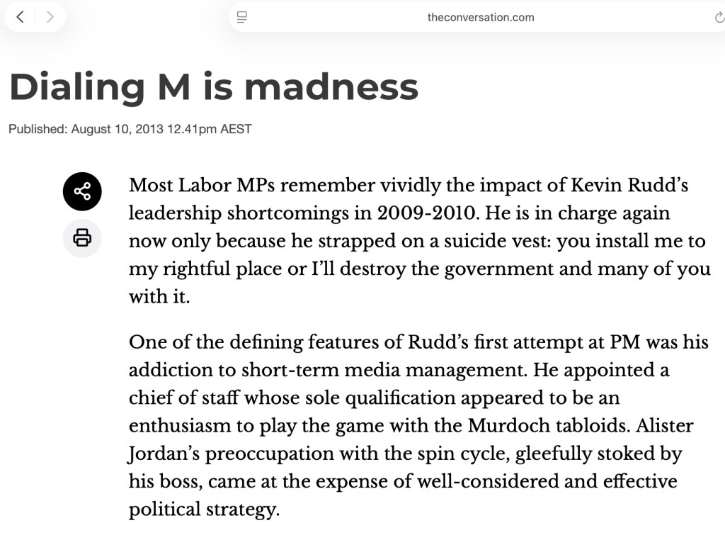 The politicians et al are being polite about Rudd, because he is, like Blair, more like one of the Murdoch patriarch’s bitches.