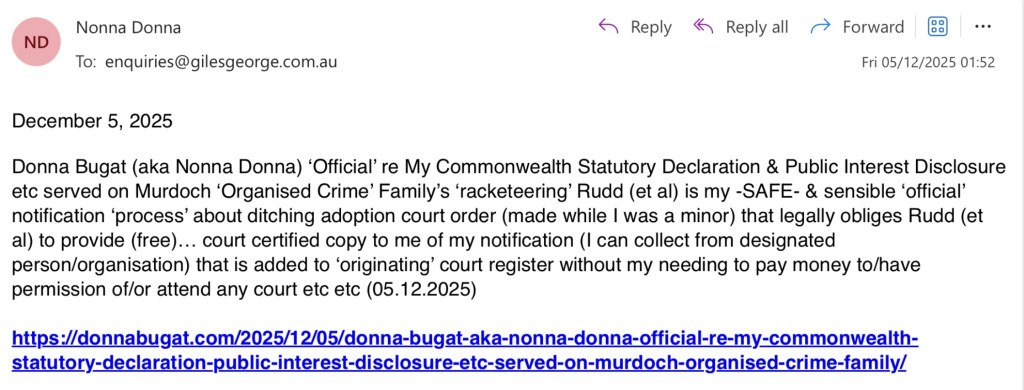 The easily accessible notification process of ditching an adoption court order (along with the legally unworkable accompanying ‘regulatory regime’ of adoption) means that someone made an adoptee as a minor can ‘officially’ notify -any- politician or public official (I only mention the irresponsible Rudd in my own case because it is what he should have put in place) who must provide a free court certified copy of the notification that is then included on the originating court register, to the adoptee along with a free court certified copy of the adoption court order (for our records) all without someone made an adoptee as a minor, needing to go to any court.