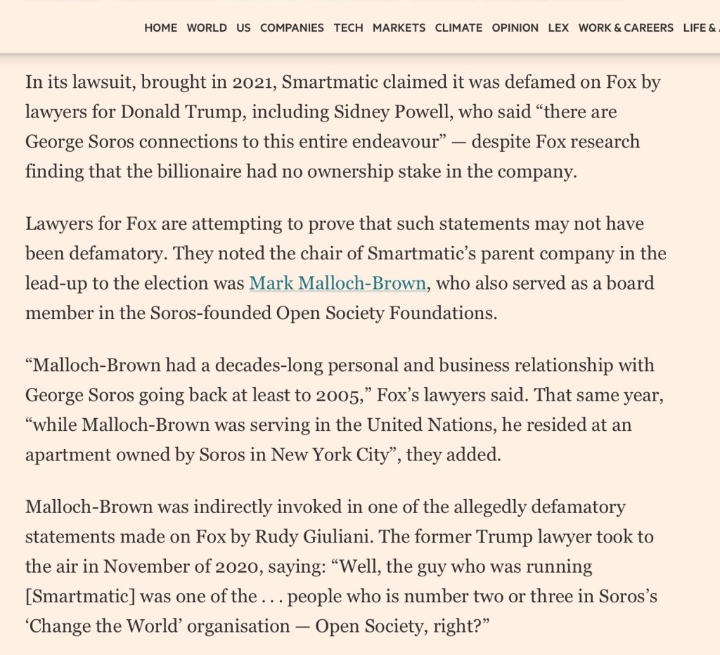 I didn’t personally notice any difference in the UK between Lord Malloch-Brown and the Murdoch ‘Organised Crime’ family ?: